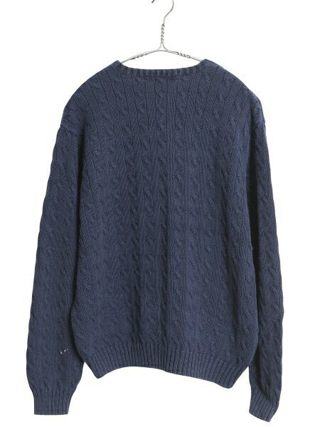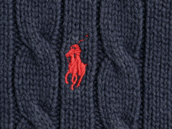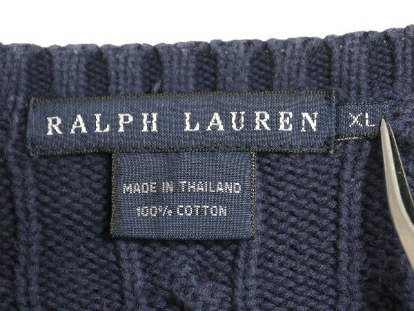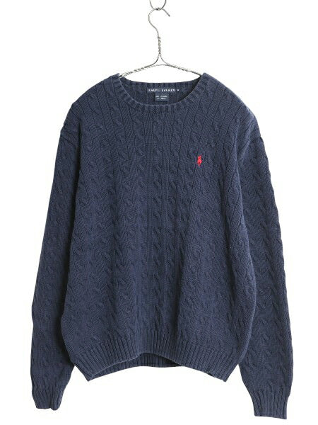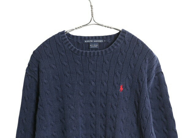 ラルフローレン コットン ケーブル ニット セーター レディース XL ポロ 長袖ニット ワンポイント クルーネック 大きいサイズ シンプル 紺