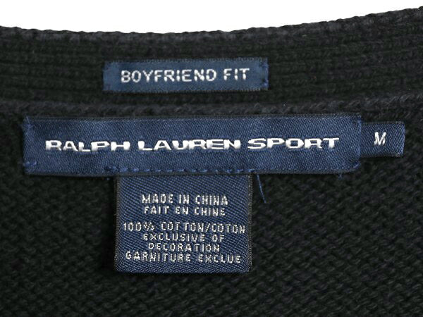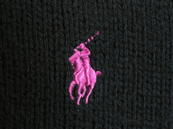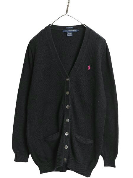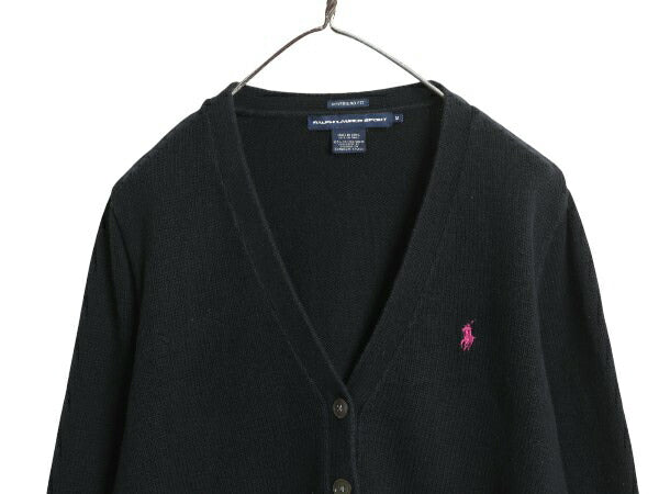 ラルフローレン コットン ニット カーディガン レディース M ポロ スポーツ セーター 重ね着 前開き 羽織り ポケット付き ワンポイント 黒