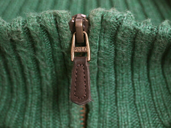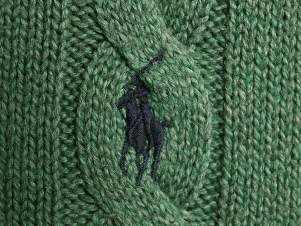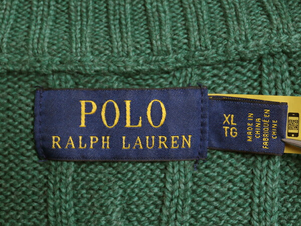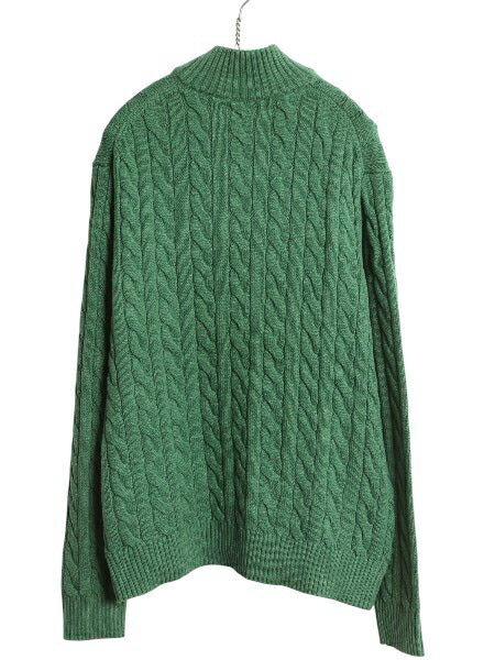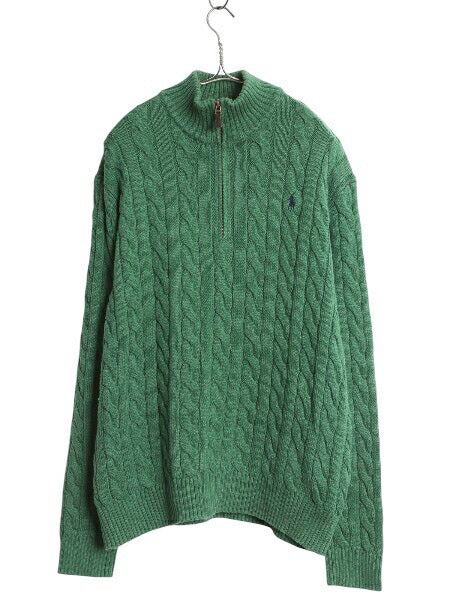 ポロ ラルフローレン コットン ケーブル ニット セーター メンズ XL オールド ハイネック ハーフジップ ワンポイント リブ編み シンプル 緑