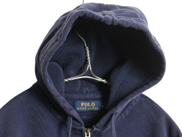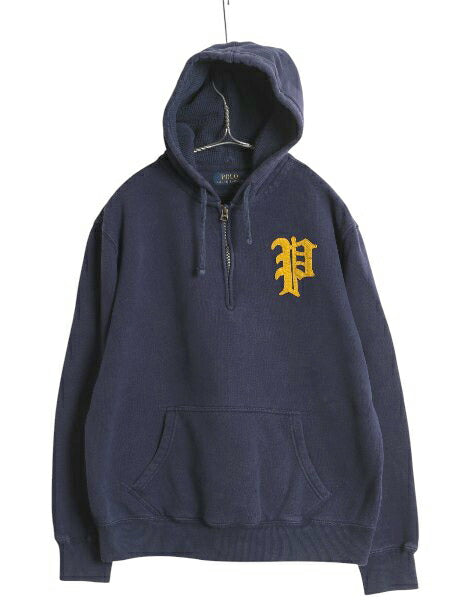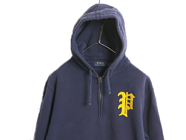 ポロ ラルフローレン ハーフジップ スウェット フード パーカー メンズ M / 古着 トレーナー プルオーバー 裏起毛 Pロゴ フェルト ワッペン
