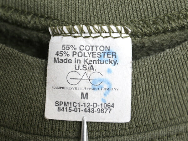 USA製 米軍実物 USMC プリント スウェット メンズ M 12年製 マリンコープ 海兵隊 ミリタリー 軍物 トレーナー 裏起毛 ワンポイント カーキ