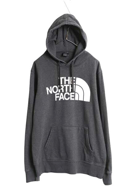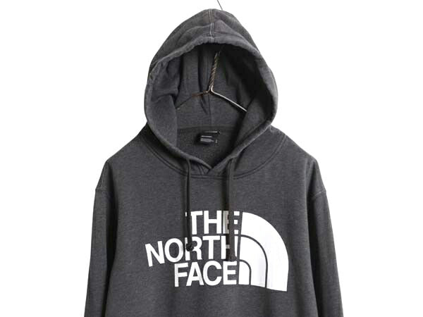 ノースフェイス プリント スウェット フード パーカー メンズ L アウトドア プルオーバー 裏起毛 トレーナー 薄手 シンプル ゆったり 濃灰