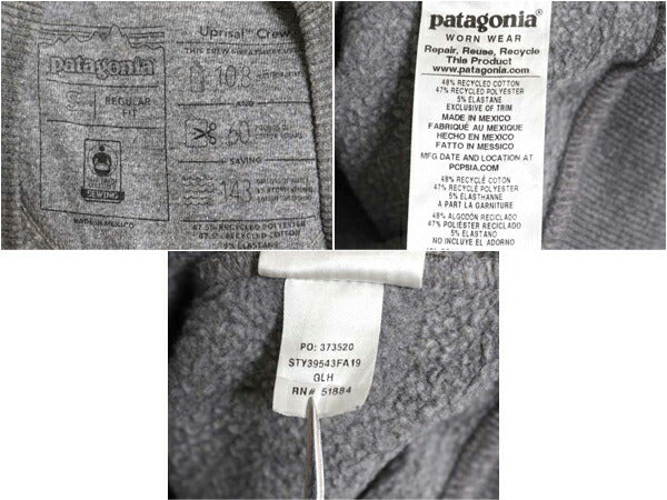 パタゴニア ワンポイント クルーネック スウェット メンズ S 古着 19年製 アウトドア トレーナー 裏起毛 ストレッチ ミドルウェイト グレー