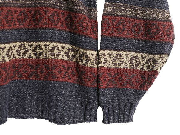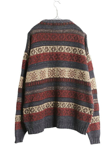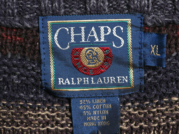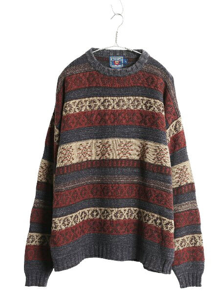 80s チャップス ラルフローレン デザイン ニット セーター メンズ XL 古着 ヴィンテージ ポロ 総柄 ボーダー コットン リネン 大きいサイズ