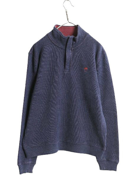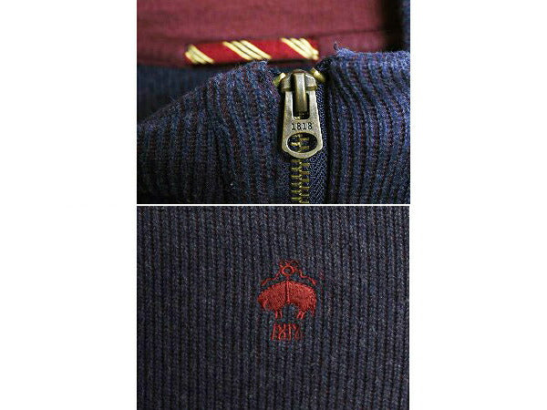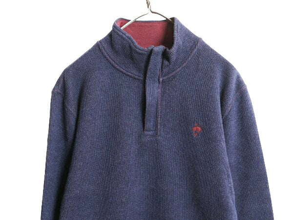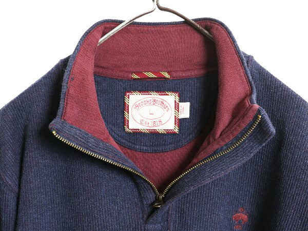 ブルックスブラザーズ ハーフジップ コットン ニット セーター メンズ L ハイネック リブ編み 長袖ニット シンプル ワンポイント ネイビー