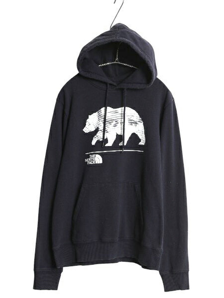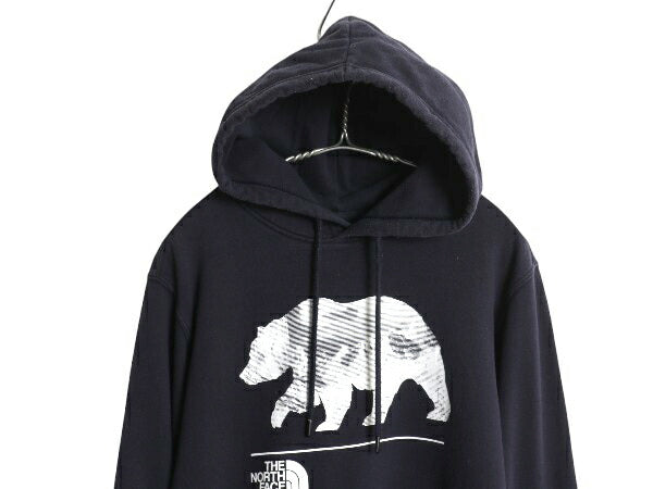 ノースフェイス プリント スウェット フード パーカー メンズ S / 裏起毛 プルオーバー トレーナー ベア イラスト グラフィック ネイビー