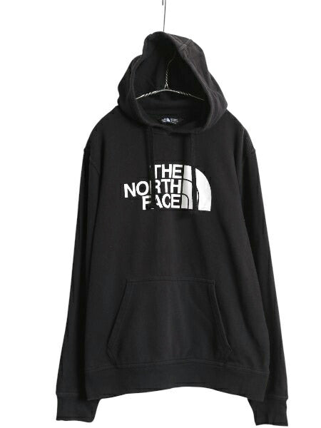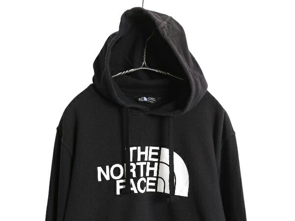 ノースフェイス プリント スウェット フード パーカー メンズ L 古着 裏起毛 プルオーバー トレーナー アウトドア シンプル 薄手 ブラック