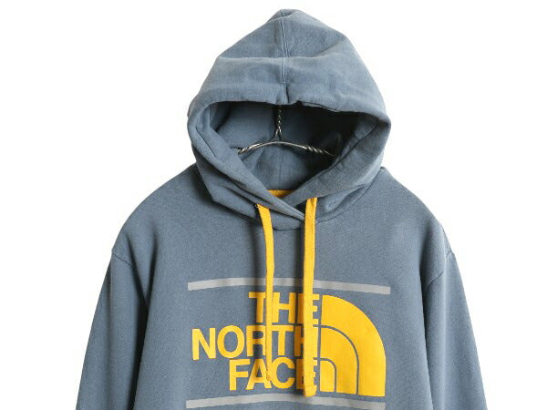 ノースフェイス プリント スウェット フード パーカー メンズ L / 古着 裏起毛 プルオーバー トレーナー アウトドア ヘビーウェイト グレー