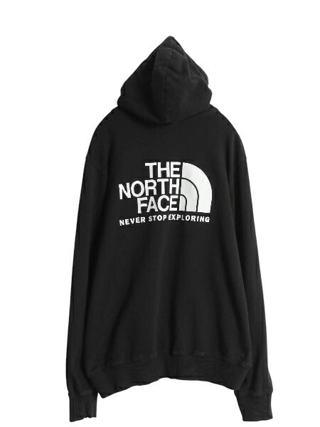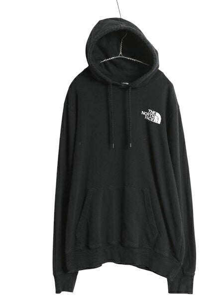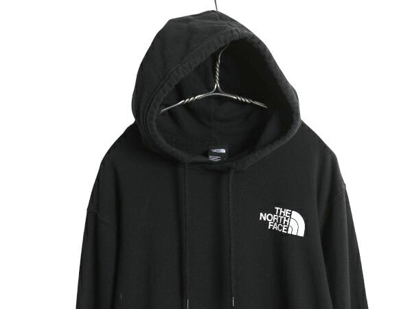 ノースフェイス 両面 プリント スウェット フード パーカー メンズ L 古着 プルオーバー トレーナー アウトドア 裏起毛 バックプリント 黒