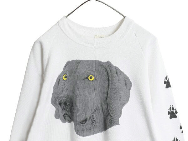 80s USA製 ドッグ アート イラスト プリント スウェット メンズ レディース L 小さめ M / ヴィンテージ アニマル 犬 トレーナー 裏起毛 白