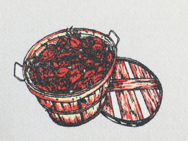 フロントに、船や自然、建物、桶に入ったカニなどが