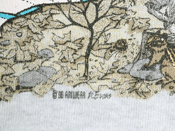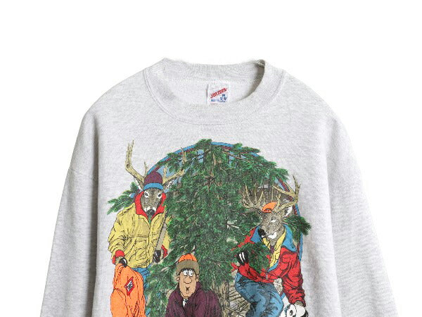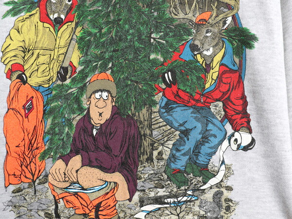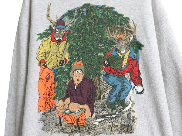 90s USA製 ジョーク アート イラスト プリント スウェット メンズ レディース M オールド 鹿 ハンティング アニマル トレーナー 裏起毛 灰