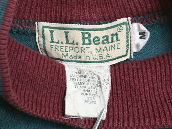 80s USA製 エルエルビーン モックネック ボーダー 長袖 Tシャツ メンズ M ヴィンテージ ロンT ラガーシャツ 素材 ヘビーウェイト コットン