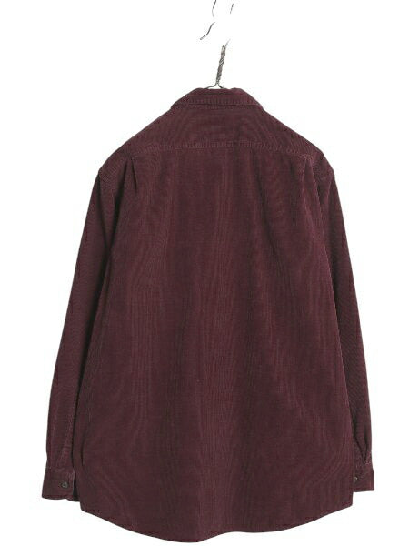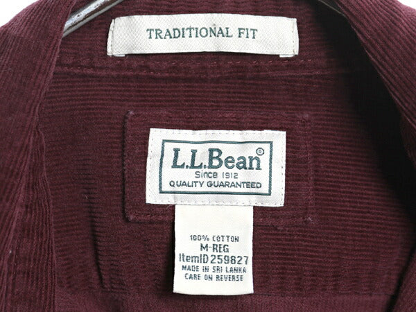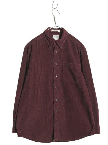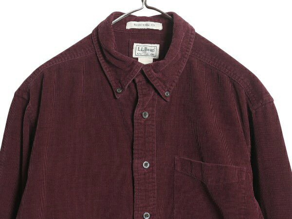 エルエルビーン 細畝 コーデュロイ 長袖 ボタンダウン シャツ メンズ M 古着 ミドルウェイト 長袖シャツ ポケット付き 無地 バーガンディ