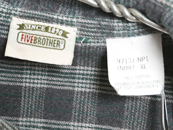 90s ファイブブラザー チェック 長袖 ボタンダウン フランネル シャツ メンズ XL / オールド 長袖シャツ ネルシャツ コットン 大きいサイズ