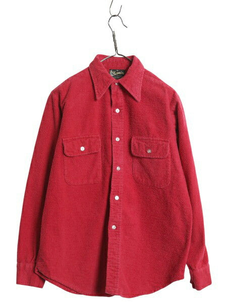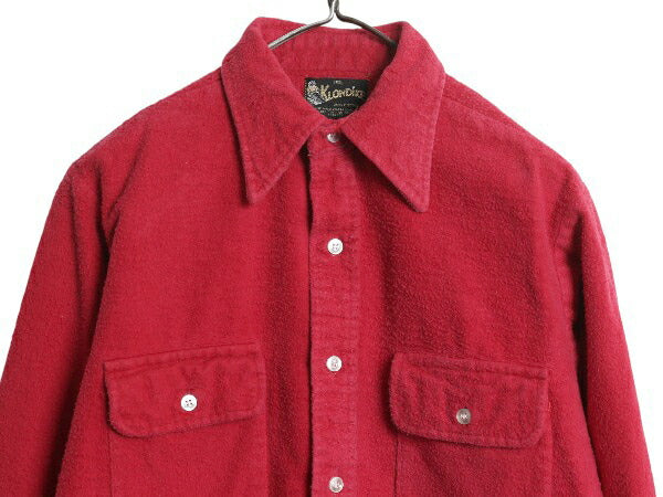 70s KLONDIKE シャモア クロス 長袖 シャツ メンズ M 古着 ヴィンテージ ネルシャツ ヘビーウェイト コットン フランネル 無地 ゆったり 赤