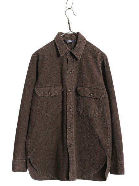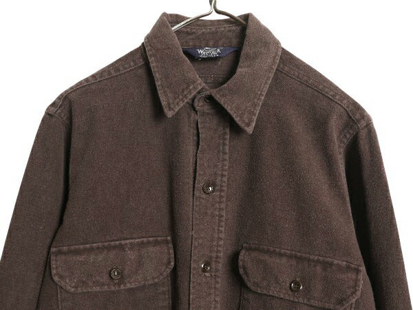80s USA製 ウールリッチ シャモア クロス 長袖 シャツ メンズ M / ヴィンテージ ネルシャツ ヘビーウェイト コットン フランネル 無地 茶