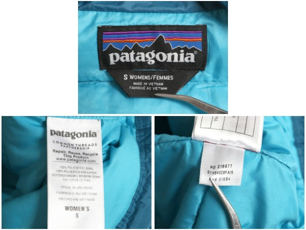 パタゴニア ダウン セーター ベスト レディース S / 15年製 フルジップ 800フィル アウトドア パッカブル 重ね着 前開き ターコイズ ブルー