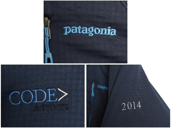 右胸に企業ロゴ刺繍、左袖にもナンバリング刺繍入り