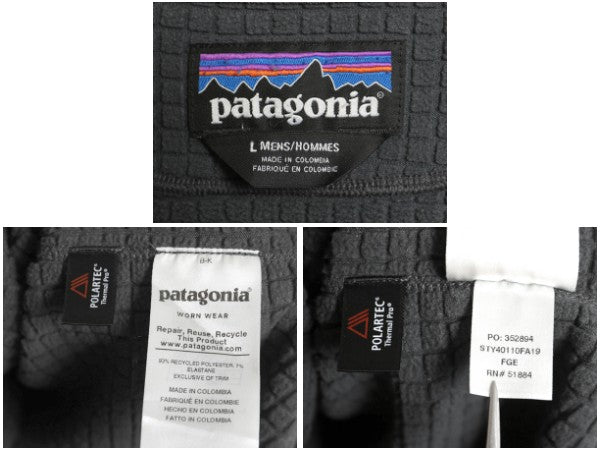 パタゴニア R1 プルオーバー メンズ L 古着 19年製 アウトドア レギュレーター ストレッチ 裏 フリース ハーフジップ ロンT ハイネック 灰