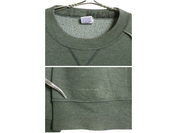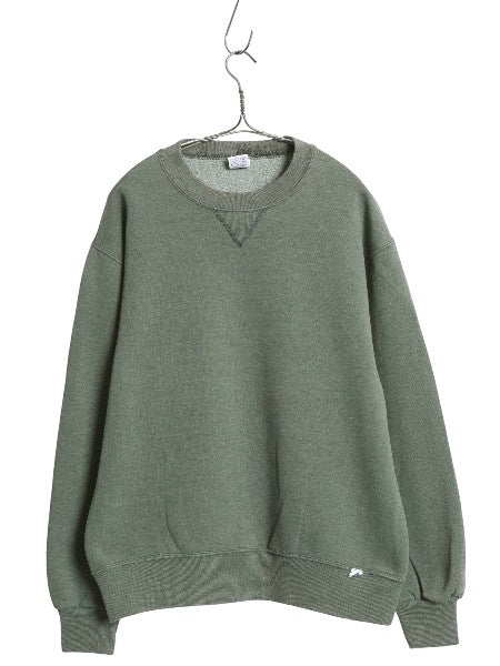 90s USA製 ラッセル 無地 スウェット メンズ レディース M 古着 オールド トレーナー 前V 裏起毛 ワンポイント ブランク トップス グリーン