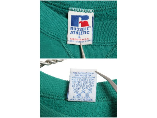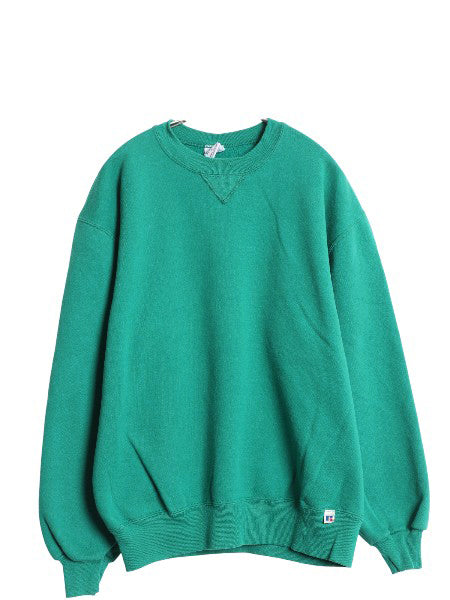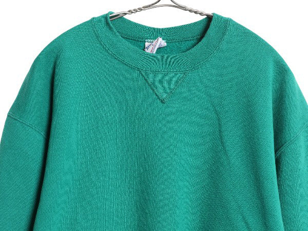 90s USA製 ラッセル 無地 スウェット メンズ レディース L 古着 オールド トレーナー 前V 裏起毛 ワンポイント ブランク トップス シンプル
