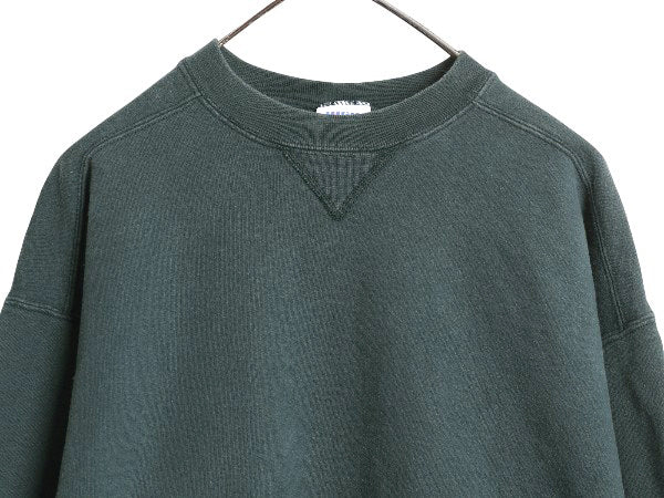 90s USA製 ラッセル 無地 スウェット メンズ レディース L / 古着 オールド トレーナー 前V 裏起毛 ヘビーウェイト ワンポイント ブランク