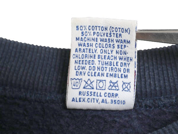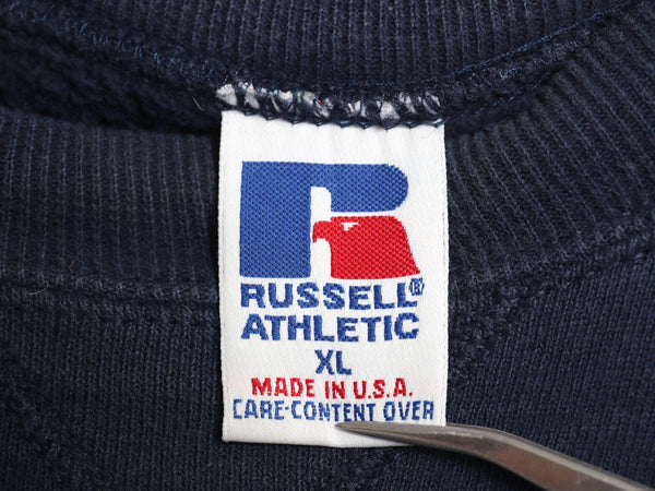 90s USA製 ラッセル 無地 スウェット メンズ レディース XL オールド トレーナー 前V 裏起毛 大きいサイズ ワンポイント ブランク ネイビー