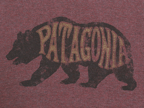 パタゴニア プリント スウェット フード パーカー メンズ S / 15年製 プルオーバー ストレッチ トレーナー ベア グラフィック バーガンディ