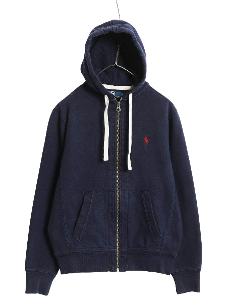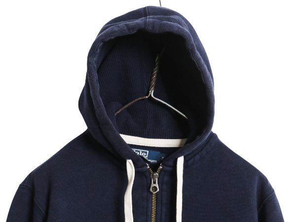00s ポロ ラルフローレン フルジップ スウェット フード パーカー メンズ S / オールド トレーナー 裏起毛 ヘビーウェイト ワンポイント 紺