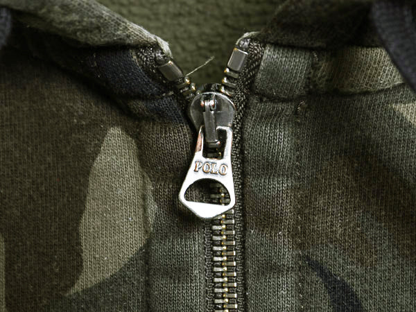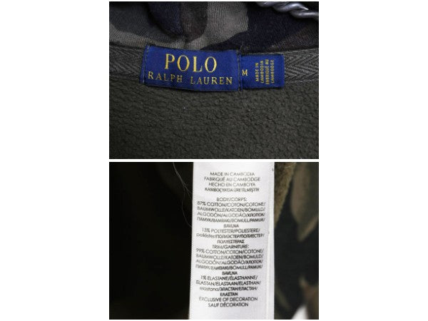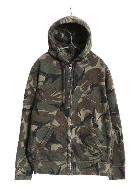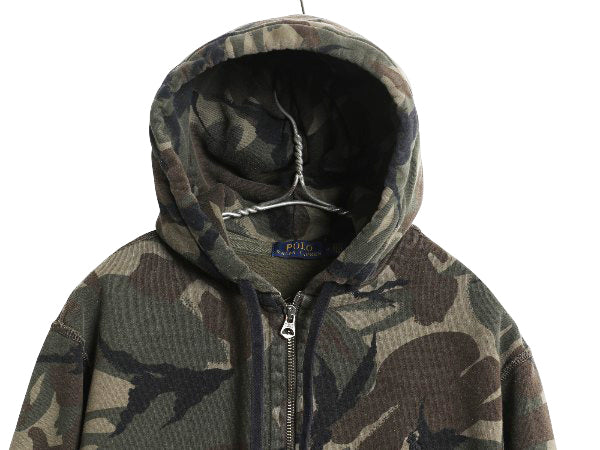 ポロ ラルフローレン 迷彩 フルジップ スウェット フード パーカー メンズ M 古着 トレーナー 裏起毛 ヘビーウェイト カモフラージュ 総柄