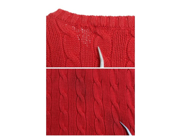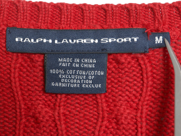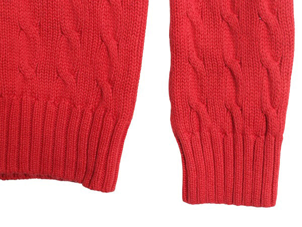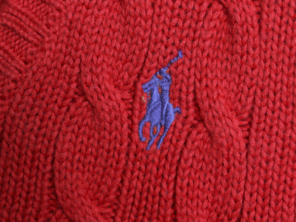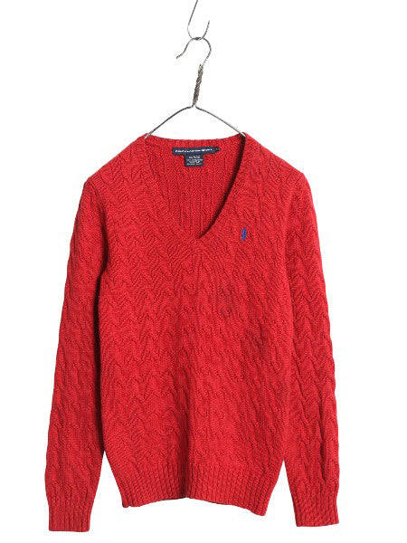 ラルフローレン Vネック コットン ケーブル ニット セーター レディース M / ポロ スポーツ 長袖ニット ワンポイント きれいめ トップス 赤