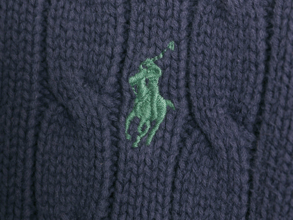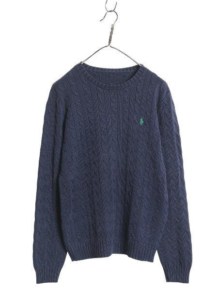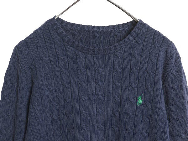 ラルフローレン コットン ケーブル ニット セーター レディース XL 程 ポロ 長袖ニット ワンポイント クルーネック 大きいサイズ きれいめ
