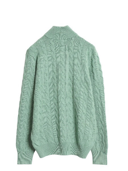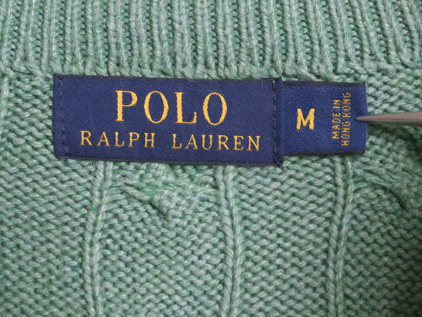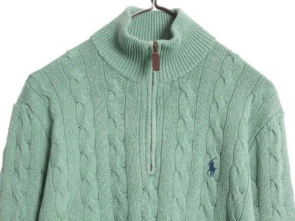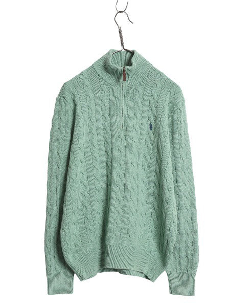 ポロ ラルフローレン ハーフジップ ケーブル ニット セーター メンズ M ハイネック ワンポイント 高級 100% シルク シンプル プルオーバー