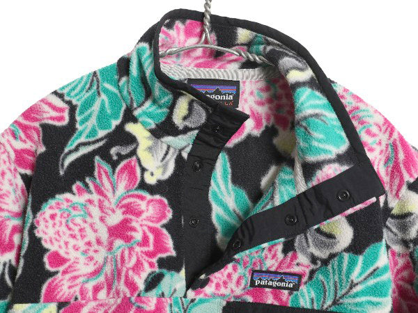 パタゴニア 総柄 ライトウェイト シンチラ スナップT レディース M 古着 15年製 フリース プルオーバー ジャケット ブルゾン マルチカラー