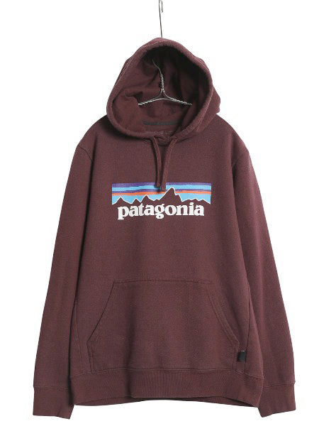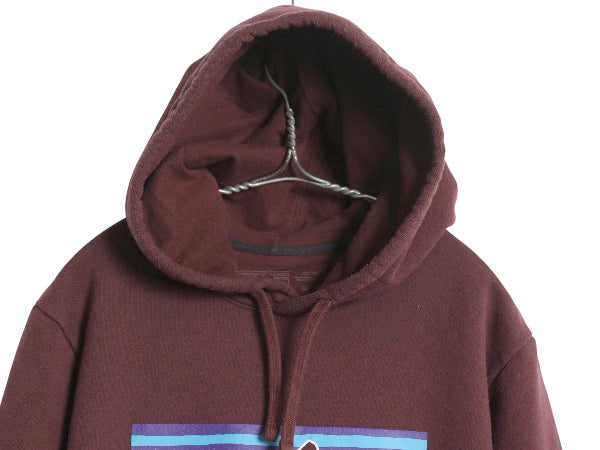 パタゴニア プリント スウェット フード パーカー メンズ M 21年製 トレーナー プルオーバー ヘビーウェイト 裏起毛 バーガンディ シンプル