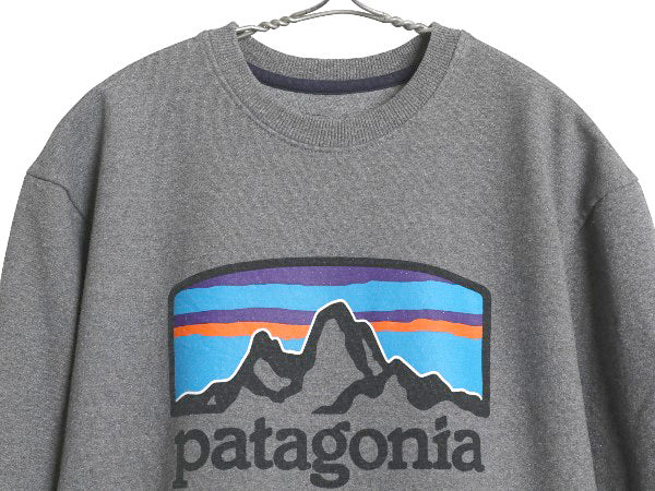 US企画 パタゴニア プリント スウェット メンズ XS 19年製 トレーナー ストレッチ 裏起毛 ヘビーウェイト アウトドア グラフィック グレー