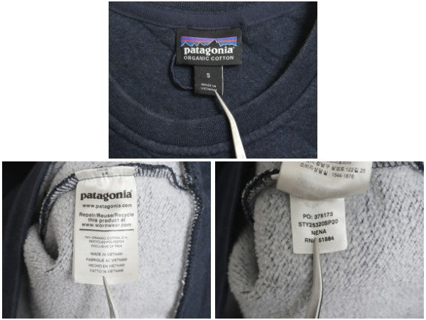 パタゴニア オーガニック コットン キルト クルーネック スウェット メンズ S 20年製 アウトドア トレーナー キルティング 裏起毛 ネイビー